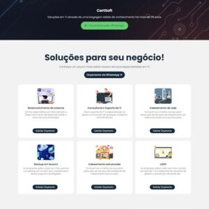 Transforme sua ideia em um negócio online! Site de fácil instalação, adicione as informações de sua empresa de maneira rápida, conte com tutoriais e nosso suporte! O que está incluso na assinatura? Hospedagem Domínio Inclusão no Google Versão para Desktop Versão para Tablet Versão para Celular Certificado SSL Gerenciador de Conteúdo Até 10 contas de…